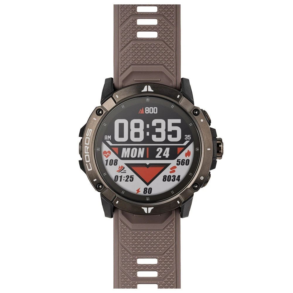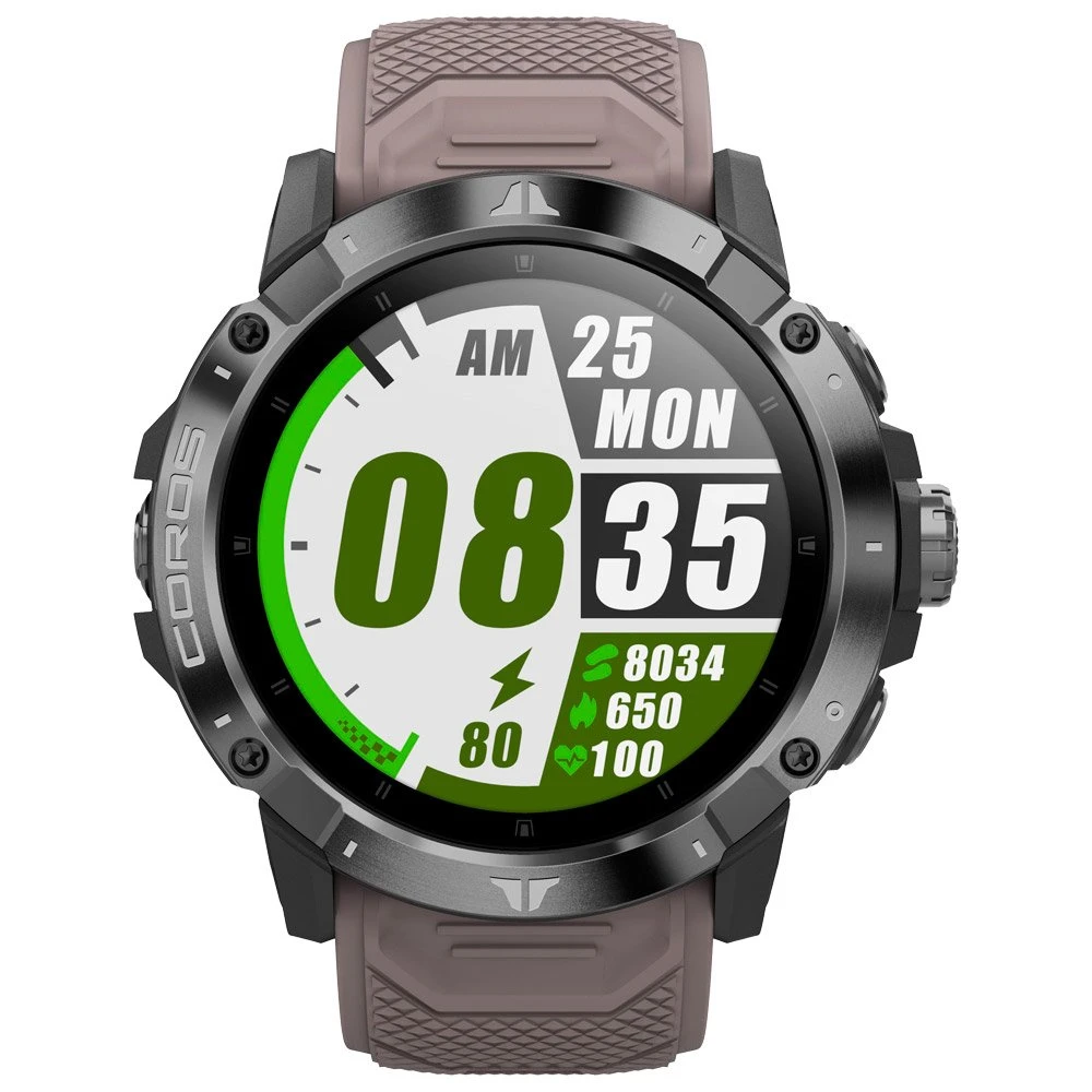 Mit dieser Uhr könnt ihr Trainingspläne erstellen und euch neue Ziele setzen, euren Leistungsfortschritt bewerten uvm. Integriert sind etwa Sensoren zur Herzfrequenzmessung. Mit dem GPS- und Navigationssystem wisst ihr stets schnell und genau, wo ihr euch befindet. Diese Coros-Uhr ist wasserdicht und ihr Display ist stoßfest sowie stets gut ablesbar. Die Coros Vertix 2 ist leicht und mit einem wiederaufladbaren Akku bestückt, der im Modus GPS UltraMax bis zu 240 Stunden, im GPS/QZSS-Modus bis zu 140 Stunden und im normalen Uhrenmodus bis zu 60 Tage Autonomie bietet.