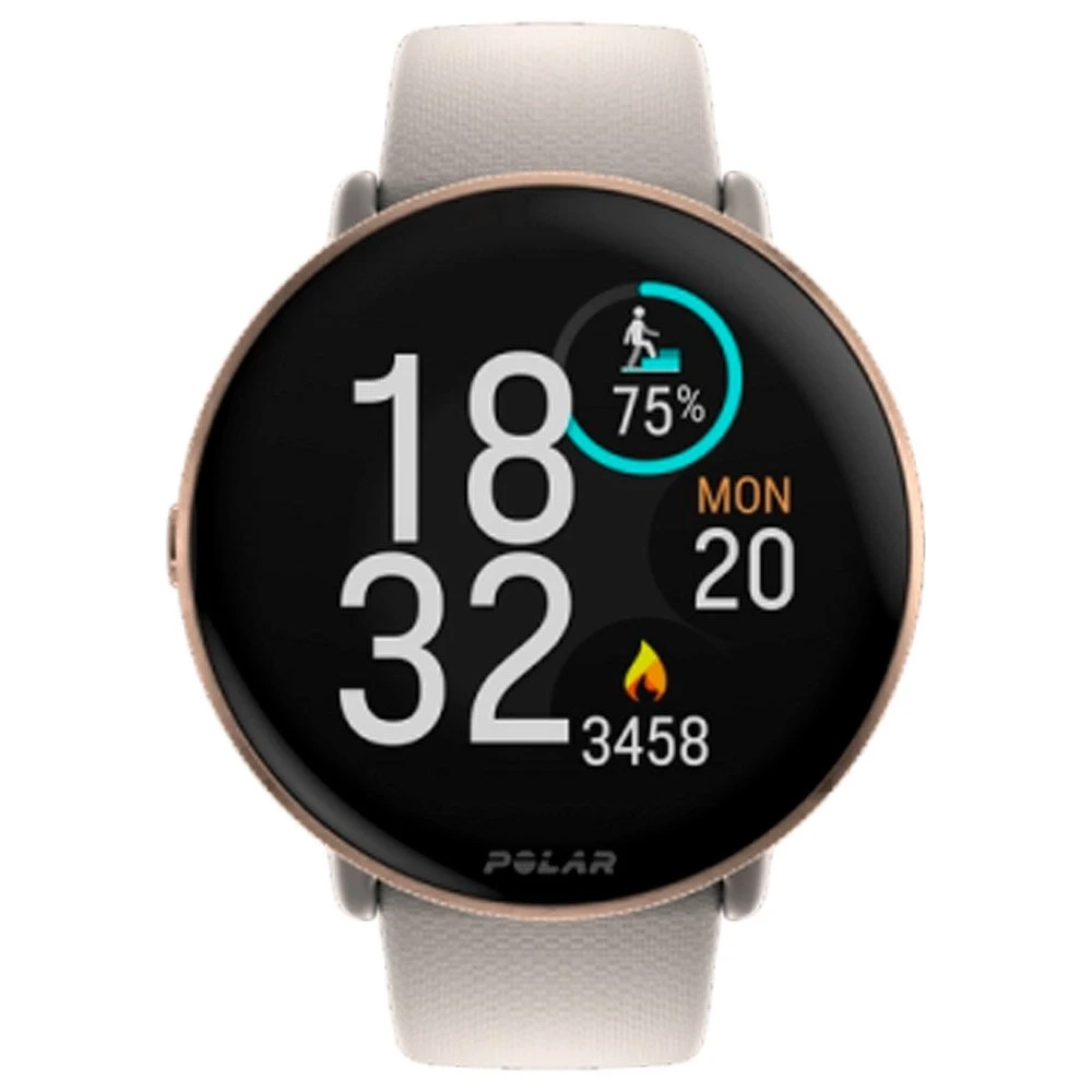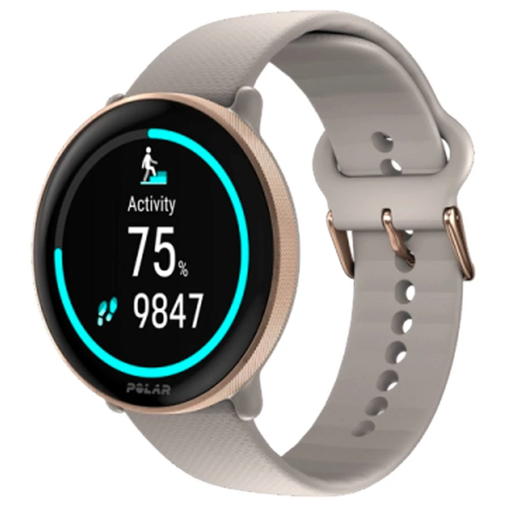 Die Fitnessuhr Ignite 3 von Polar ist eine digitale Uhr mit zahlreichen nützlichen Funktionen für Sportler, aber nicht nur für sie. Sie ist mit einem Touchscreen und Bluetooth 5.1 sowie einem GPS-Sensor versehen, der euch bei euren Läufen, Radtouren oder Wanderungen hilft. Zudem ist die Uhr wasserdicht, was sie für Schwimmer und Triathleten interessant macht. Ein Pulsmesser und verschiedene Funktionalitäten helfen euch dabei, eure Erholungsphasen anzupassen und euren Schlaf sowie eure Trainings zu optimieren. Das hochauflösende Display ist vollständig personalisierbar, damit es exakt das anzeigt, was ihr sehen wollt: Zeit, Herzfrequenz, Anzahl der zurückgelegten Kilometer usw. Eine sehr schöne, gut verarbeitete und überaus funktionelle Sportuhr.