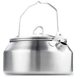 Der Glacier Stainless Tea Kettle aus Edelstahl von GSI Outdoor ist perfekt für Camper oder Wanderer, die langlebiges Material mit traditionellem Design wünschen. Er hat ein Fassungsvermögen von 1 Liter, lässt sich leicht von oben befüllen und wird während des Kochens mit einem Klappgriff verriegelt, was für zusätzliche Sicherheit sorgt.