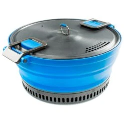 DerEscape HS 2 L von GSI Outdoors ist ein 2-Liter-Topf mit einer Hybridkonstruktion mit einem Teflonboden für schnelles Kochen und Silikonrändern, die es ermöglichen, den Topf in sich zusammenzufalten und so für ein minimales Packmaß zu sorgen.