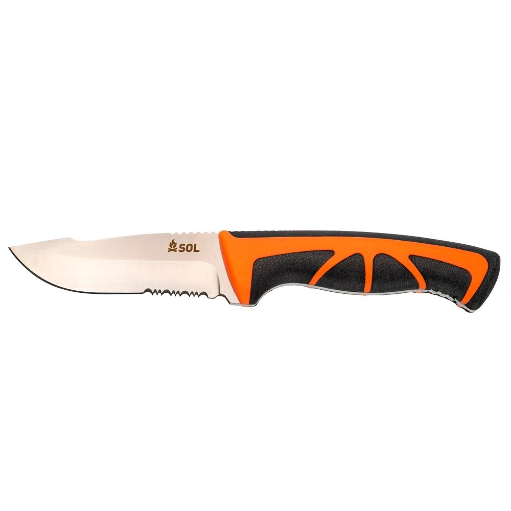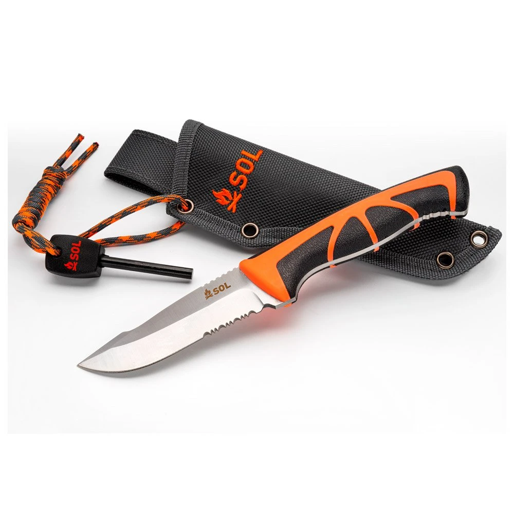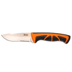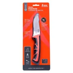 Mit einer robusten Klinge aus rostfreiem Stahl, die teilweise gezackt ist, schneidet das SOL Stoke Field Knife Survival Knife Seile leicht durch. Der Griff ist ergonomisch geformt und bietet eine gute Griffigkeit. Mit seinem Nietenholster ist es gut geschützt, während es am Gürtel getragen werden kann, um einen schnellen Zugriff zu gewährleisten.