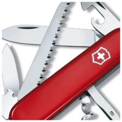 Das Schweizer Taschenmesser Victorinox Camper besitzt zwei Klingen und eine Holzsäge, zwei Schraubendreher und zahlreiche weitere Werkzeuge, die für euer Campingessen sehr nützlich sind: Dosenöffner, Flaschenöffner, Korkenzieher und Zahnstocher.