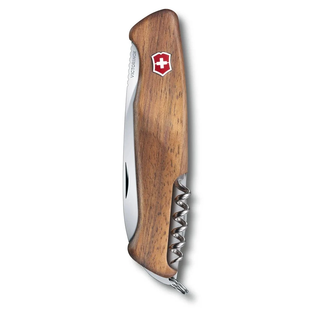 Das verwendete Nussbaumholz verleiht dem Taschenmesser eine edle Optik. Hergestellt wird es in der Schweiz.