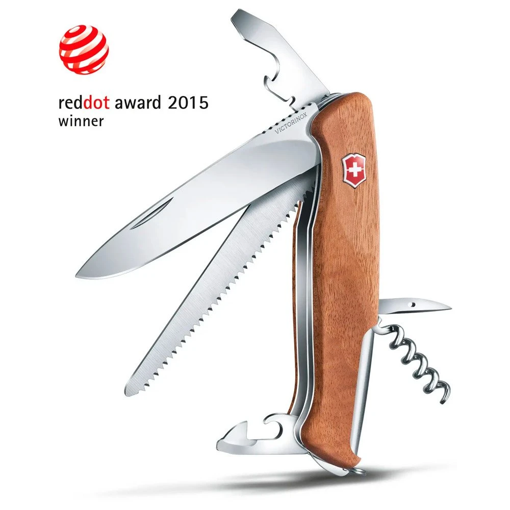 Das Schweizer Taschenmesser Victorinox Rangerwood 55 ist ein ziemlich komplettes Modell mit einer großen, feststellbaren Klinge, einer Holzsäge, zwei Schraubendrehern und Öffnern für Konservendosen, Bierflaschen und Weinflaschen.