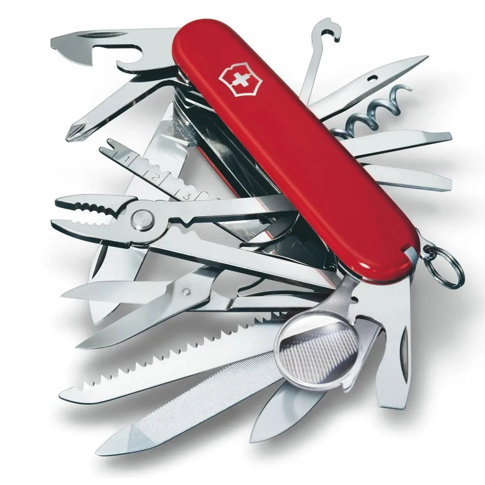 Mit nicht weniger als 33 Funktionen gebührt dem Schweizer Taschenmesser Victorinox Swisschamp der Titel des Multifunktions-Weltmeisters. Mit diesem Tool könnt ihr zahlreiche Probleme lösen und Herausforderungen des Alltags meistern, denn mit seiner Vielzahl an Werkzeugen steht es unter allen Umständen seinen Mann.