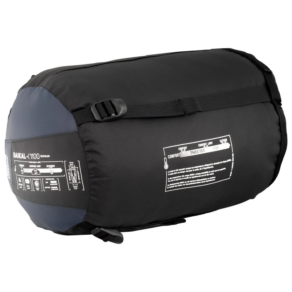 Der Schlafsack Millet Baikal 1100 Reg ist ein 3-Jahreszeiten-Schlafsack, der euch beim Wandern und bei euren Trekkingtouren begleitet. Dieser Schlafsack in Standardgröße besteht aus synthetischen Materialien und kommt so bestens mit Feuchtigkeit etwa in feuchten Umgebungen, bei Regen oder ganz einfach mit der Feuchtigkeit im Zelt zurecht. Zugleich bietet dieses synthetische Material den Vorteil, dass es pflegeleicht ist und ihr euren Schlafsack somit über viele Jahre verwenden könnt. Seine Komforttemperatur reicht bis zu 5° C.