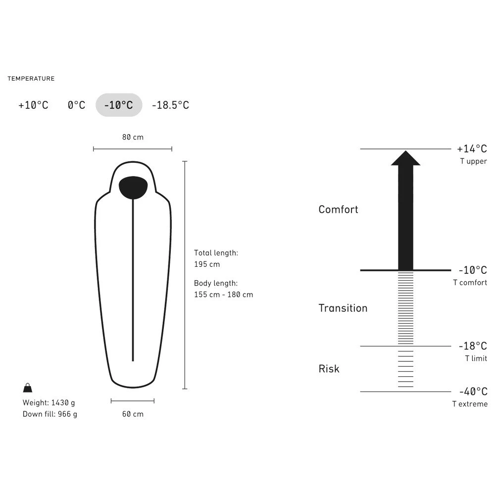 - Komforttemperatur: -10° C, Grenztemperatur: -18° C, Extremtemperatur: -40° C