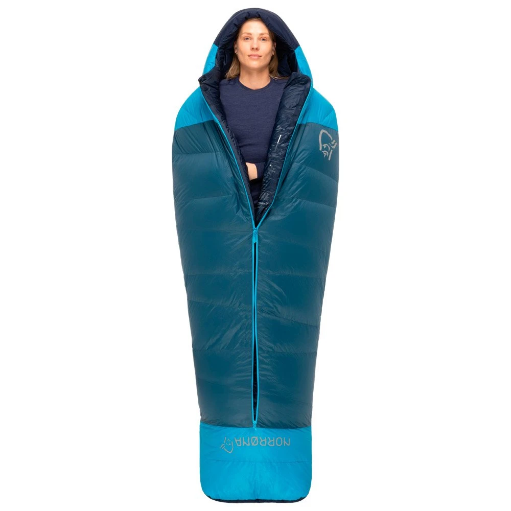 Der Damen Schlafsack Falketind Down 800 -10 Women von Norrona ist ein warmes und komfortables Modell fürs Bergsteigen und für Winter-Biwaks. Seine Daunenfüllung bietet eine Komforttemperatur von -10° C und die anpassbare Kapuze erhöht den Kälteschutz noch extra. Eine nachhaltige, wasserabweisende Beschichtung (PFC-frei) schützt den Schlafsack vor Feuchtigkeit. Er ist zudem so behandelt, dass er seinen Wärmekomfort selbst unter feuchten Bedingungen hält, sodass ihr bei jedem Wetter eine angenehme Nacht verbringt. Dieser Schlafsack ist mit Verbindungshaken für die Isomatte und mit einer Innentasche bestückt und wird mit einem Kompressionsbeutel und einem Packbeutel verkauft.