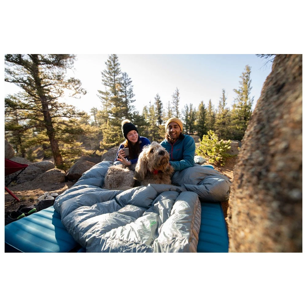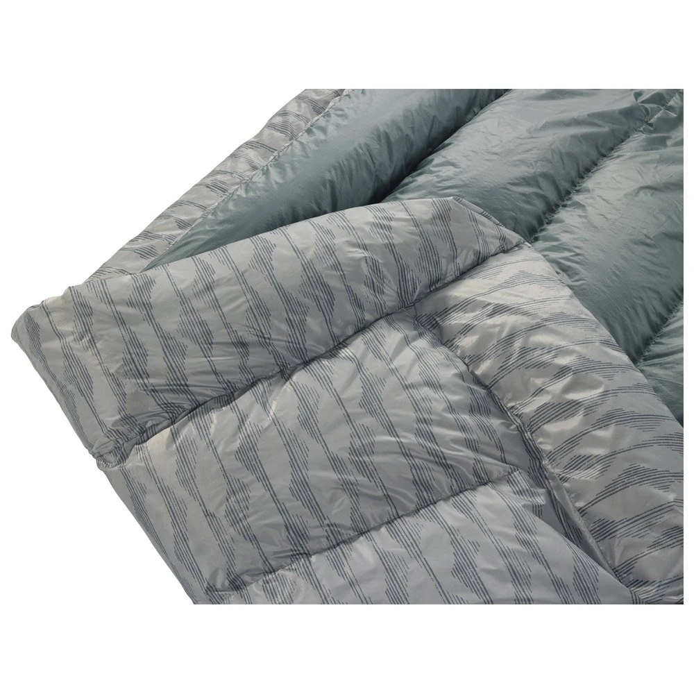 Die Steppdecke Therm-a-Rest Vela 32F/0C sorgt für einen geruhsamen Schlaf zu zweit. Mit ihren Entendaunen mit einer Bauschkraft von 650 Cuin schützt sie gut vor Feuchtigkeit und trocknet schnell. Die Daunen stammen von Tieren aus nachhaltiger Haltung. Die Kammerstruktur innen aus Meshgewebe maximiert die Bauschkraft und mindert Kältepunkte für einen angenehmen Komfort. Den Fußbereich der Decke könnt ihr über eure Füße legen oder um die Isomatte, damit keine kalte Luft nach innen strömt. Diese vielseitige Decke lässt sich mit anderen Therm-a-Rest Decken oder einem Schlafsack kombinieren, sodass ihr ein mehrlagiges Komplettsystem erhaltet, das für eine optimale Wärme sorgt. Die Komforttemperatur dieser Steppdecke liegt bei 5° C, was sie zur idealen Wahl für milde Sommernächte oder Camping im Frühjahr und im Herbst macht.