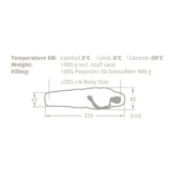 Komforttemperatur: 2°C / Grenztemperatur: -3°C / Extreme Temperatur: -20°C.