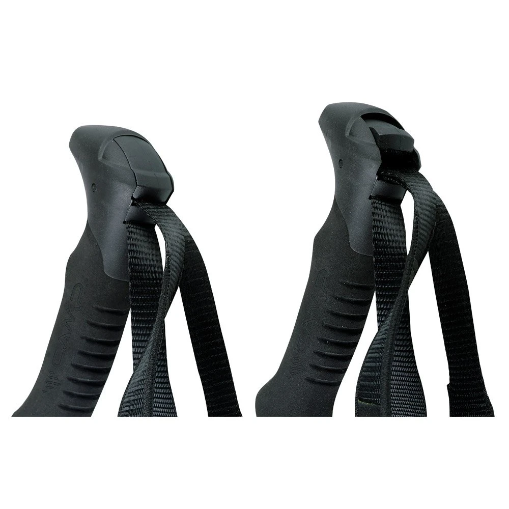 Seine dreiteilige Teleskopkonstruktion aus Aluminium ist sehr robust, die Größe lässt sich leicht von 67 bis 135 cm verstellen. Die ergonomisch geformten Griffe mit einer differenzierten Links-/Rechts-Konstruktion sind oben mit Schaumstoff ausgestattet, der sowohl Komfort als auch Gummi bietet und unten Widerstand gegen Abnutzung und Abrieb bietet. Die Handschlaufen sind ebenfalls ergonomisch geformt und rechts/links differenziert aufgebaut.