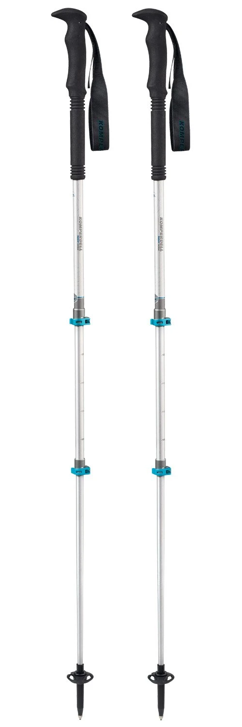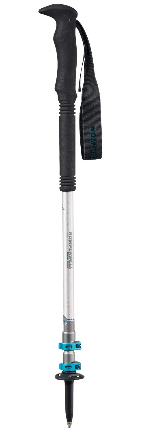 Die Komperdell Explorer Contour Powerlock sind leichte und robuste Wanderstöcke. Sie bestehen aus drei Titaniumsträngen mit Powerlock 2.1 Verriegelungssystem, einem Schaumstoffgriff für zuverlässigen Halt und einer Spitze aus Wolframkarbid. Sie lassen sich von 105 bis 140 cm verstellen und messen zusammengelegt nur 65 cm bei einem Gewicht von 270 Gramm.