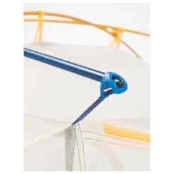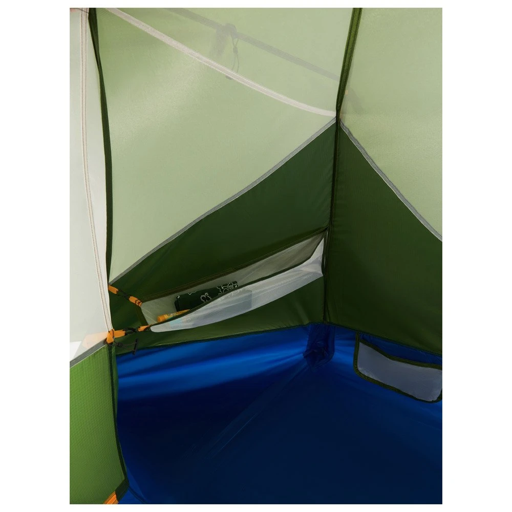 Das Zelt Marmot Limelight 2P lässt sich dank seines Farbcodes ganz einfach aufbauen. So seht ihr sofort, welche Elemente zusammengehören – was praktisch ist, wenn die Dämmerung bereits anbricht und ihr euer Zelt ganz schnell aufbauen wollt. Setzt auf einmal Regen ein, könnt ihr das Zelt auch im Fast-&-Light-Modus nur mit dem Footprint und dem Außenzelt aufbauen. Das Zelt ist zwar sehr leicht, bietet aber innen jede Menge Platz. Für euren Komfort bekommt ihr einen extrabreiten Eingang, zwei Vorräume für eure Ausrüstung, eine Befestigungsmöglichkeit für eine Lampe an der Decke und eine Innentasche, um ein paar kleine Dinge zu verstauen.