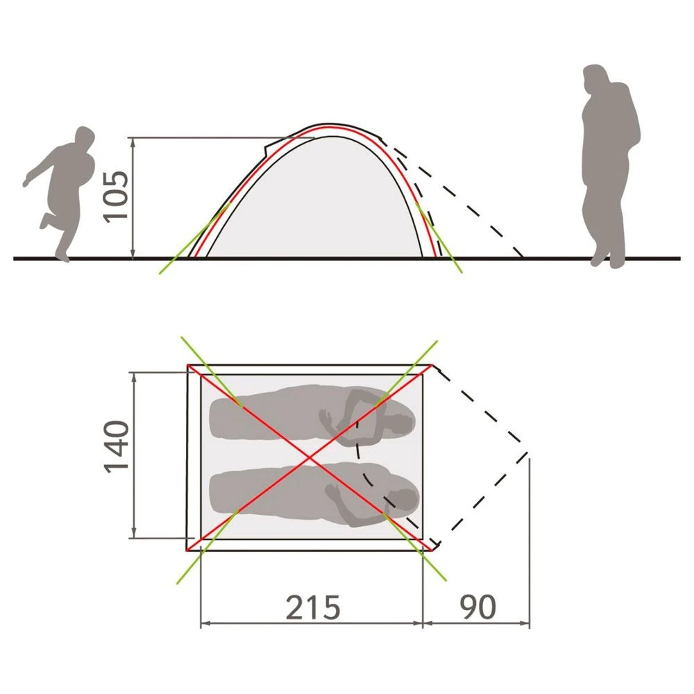 Höhe des Zeltes: 105 cm / Breite: 140 cm / Länge: 215 cm