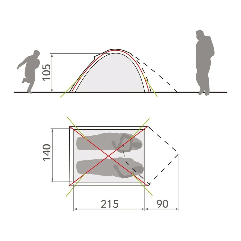 Höhe des Zeltes: 105 cm / Breite: 140 cm / Länge: 215 cm