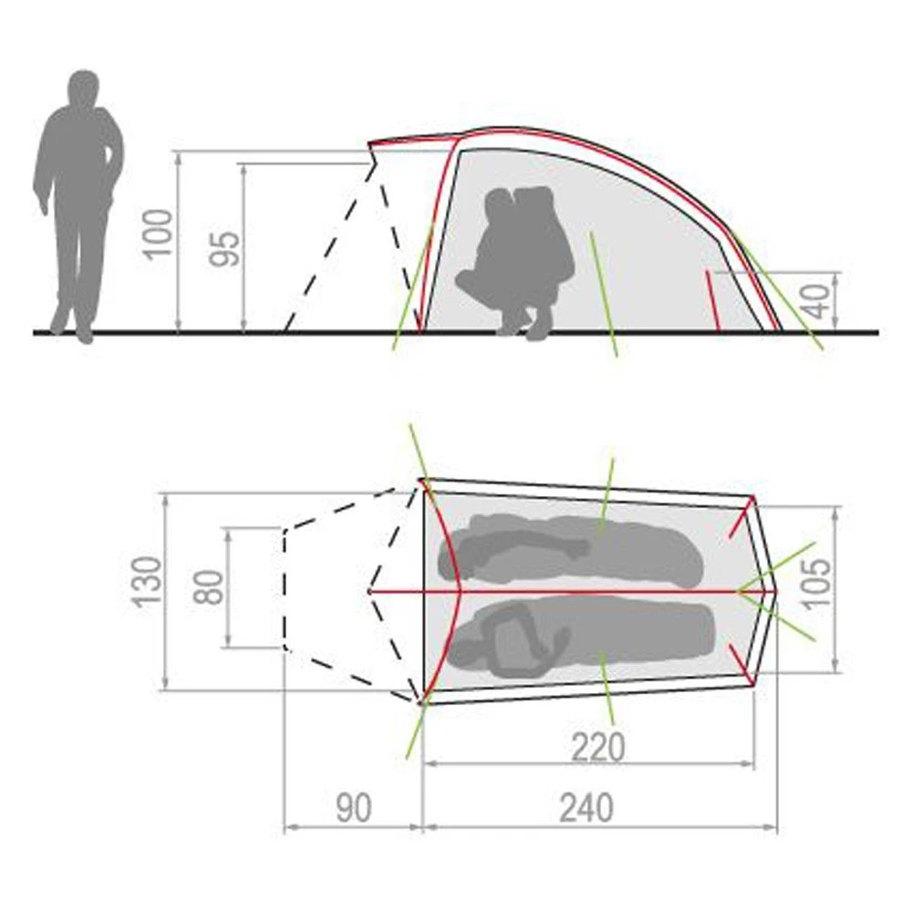 - Außenzelt: 100 % Polyamid / Innenzelt: 100 % Polyamid / Zeltboden: 100 % Polyamid